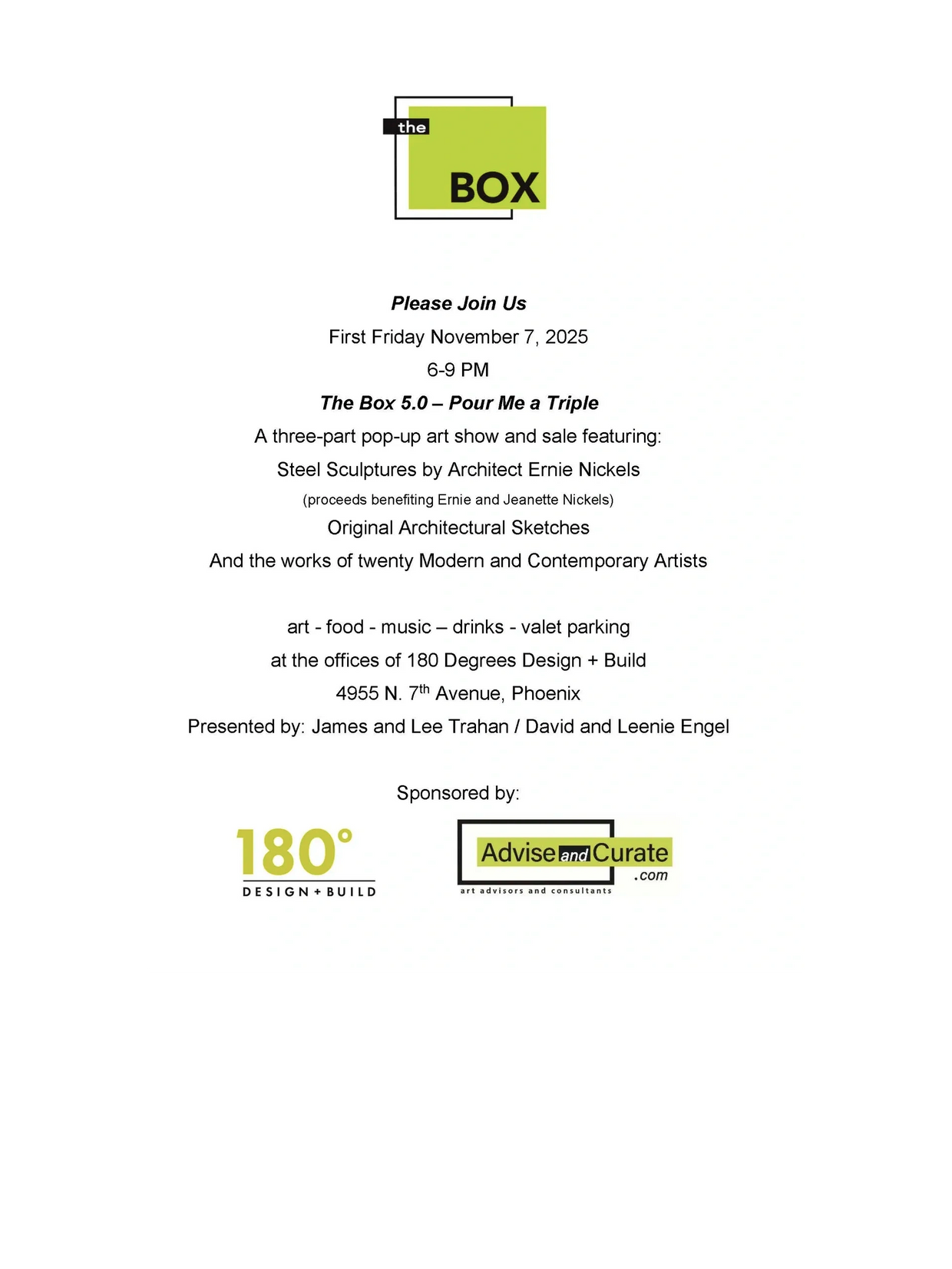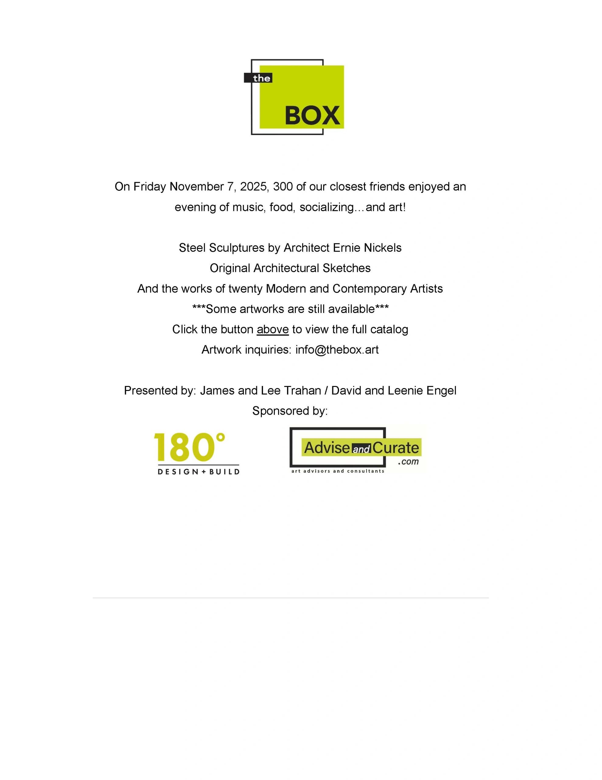 The Box is a collective of artists, art lovers, collectors, curators, and other living things. Dedicated to finding beauty wherever it presents itself, The Box is proud to bring its vision to metro Phoenix, and thanks you for your interest.